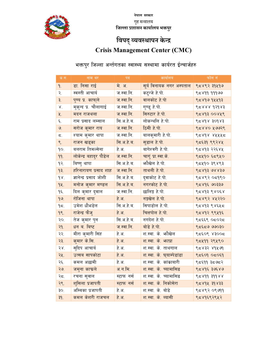 Release from District Level Crisis Management Center Bhaktapur 2077.02.15