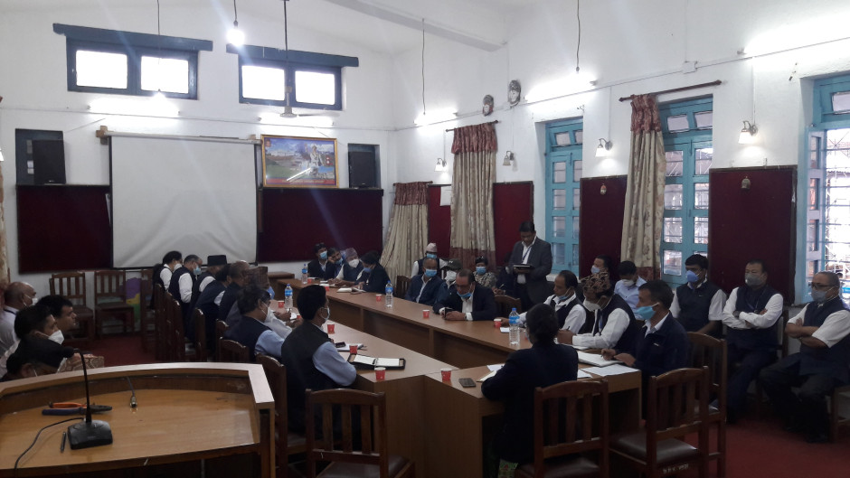 प्र.जि.अ. श्री हुमकला पाण्डेज्यूको अध्यक्षतामा भक्तपुर जिल्लाका कार्यालय प्रमुखहरूको बैठक सम्पन्नः २०७७ श्रावण ०५