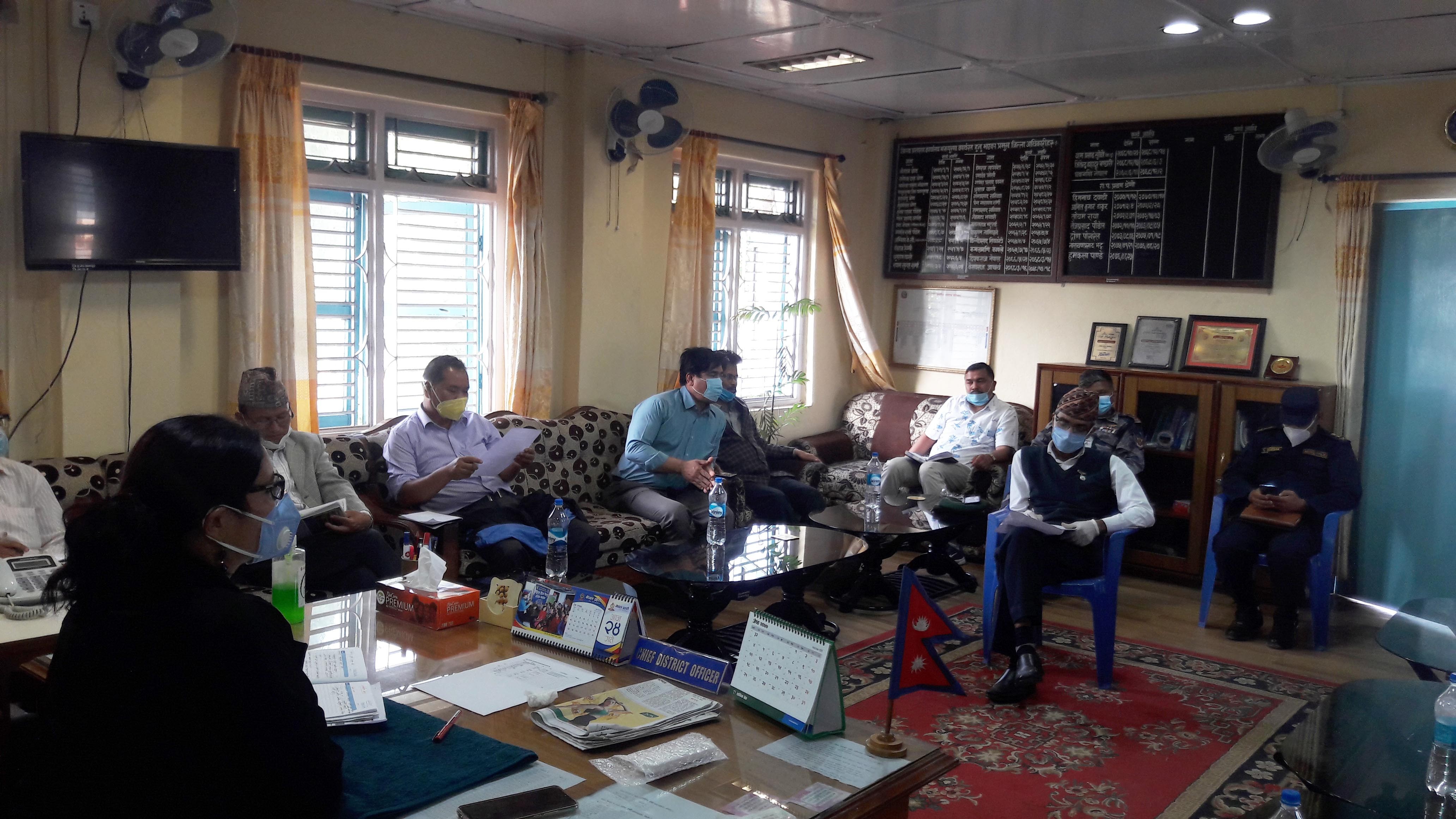 भक्तपुर जिल्लाको वस्तुस्थिति, समसामयिक अवस्था र कोभिड-19 संक्रमण, नियन्त्रण तथा प्रतिकार्यको लागि गर्नुपर्ने काम कारवाहीका सम्बन्धमा बसेको सर्बदलीय बैठकः २०७७ जेष्ठ ५