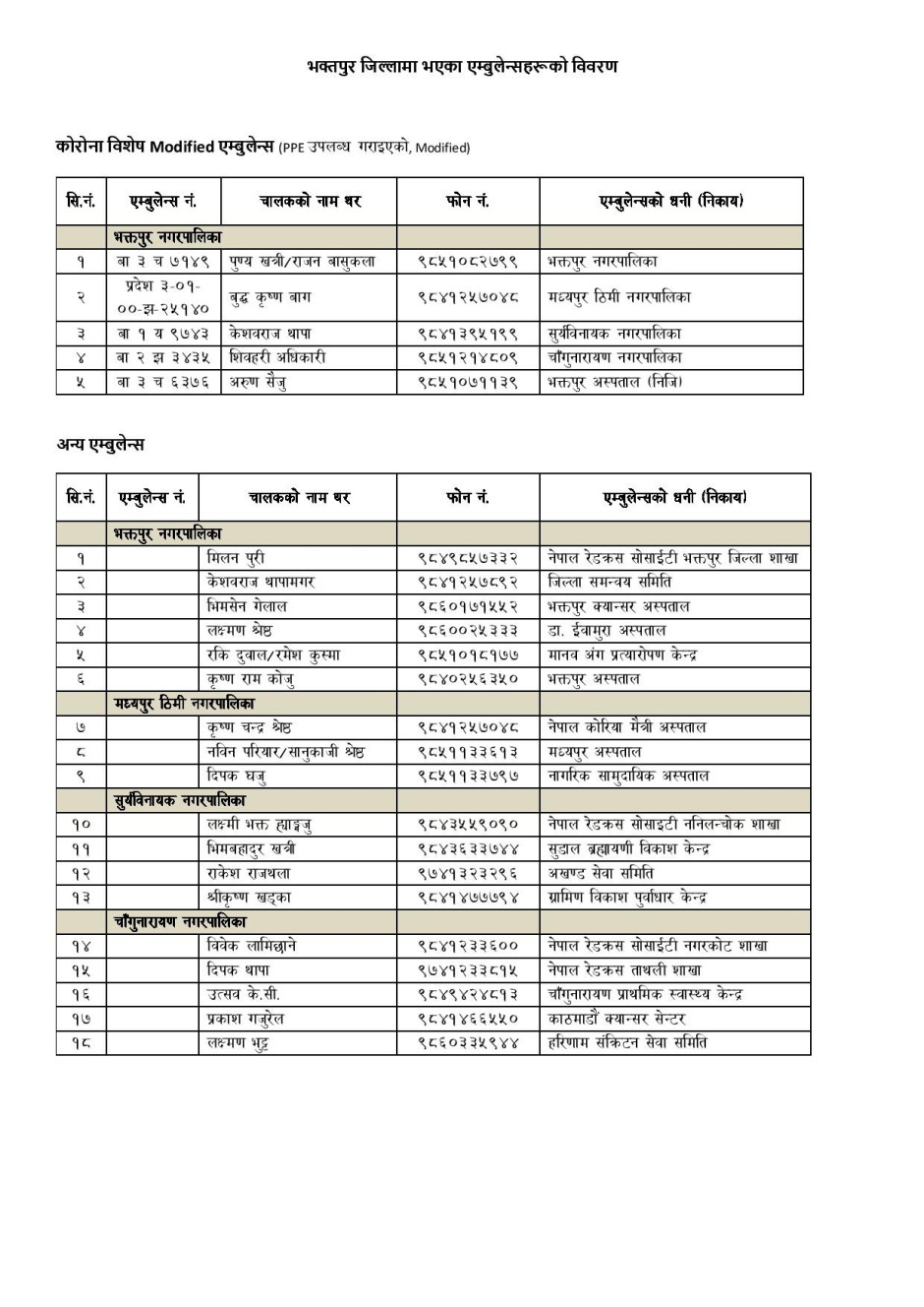भक्तपुर जिल्लामा रहेका एम्बुलेन्सहरु