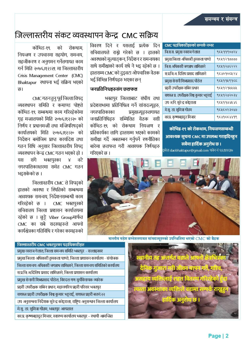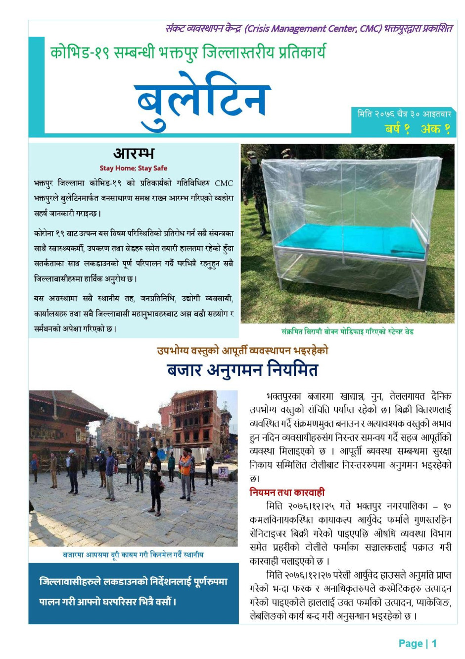 CMC भक्तपुरको बुलेटिन बर्ष १ अंक १ २०७६ चैत्र ३० को Flip Book हेर्न यहाँ क्लिक गर्नुहोस