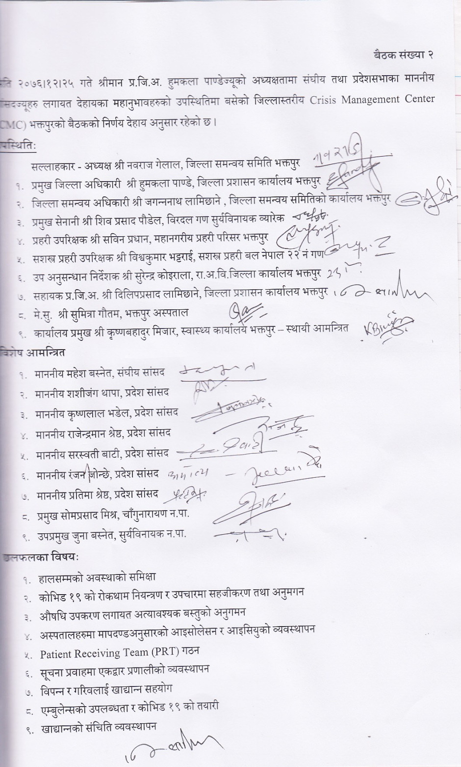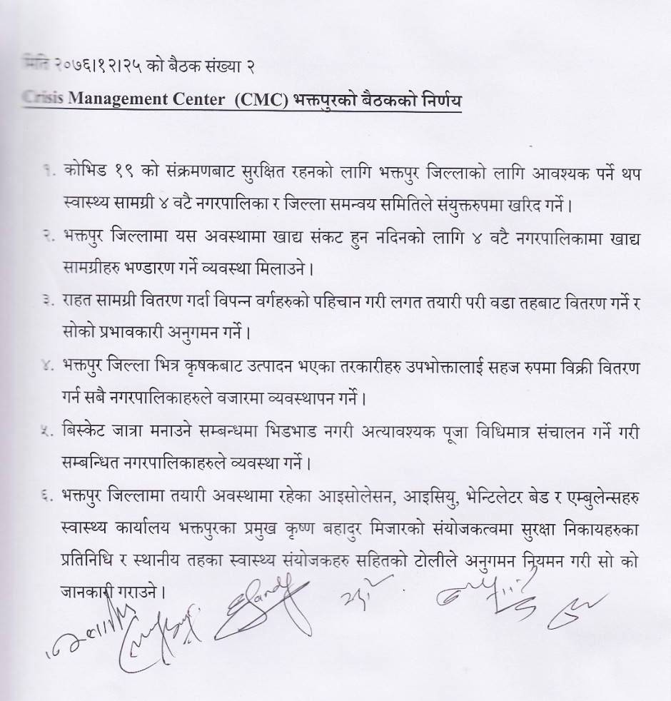 मिति २०७७-०२-१९ गते बसेको Crisis Management Center(CMC) बैठकको निर्णय । बैठक संख्या १४