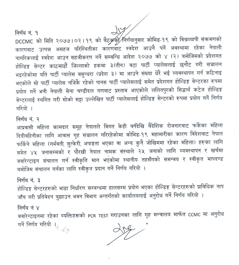 मिति २०७७-०३-०४ गते बसेको DCCMC (काठमाडौं, ललितपुर र भक्तपुर) को संयुक्त बैठकको निर्णय
