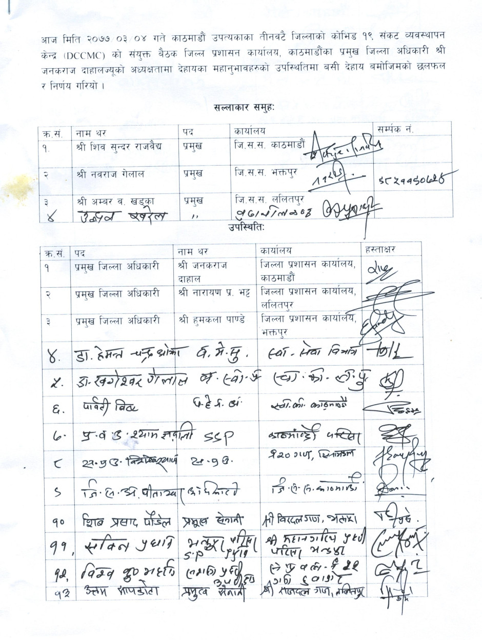 मिति २०७७-१२-२२ गते बसेको District Covid-19 Crisis Management Center (DCCMC) बैठकको निर्णय । बैठक संख्या ४५