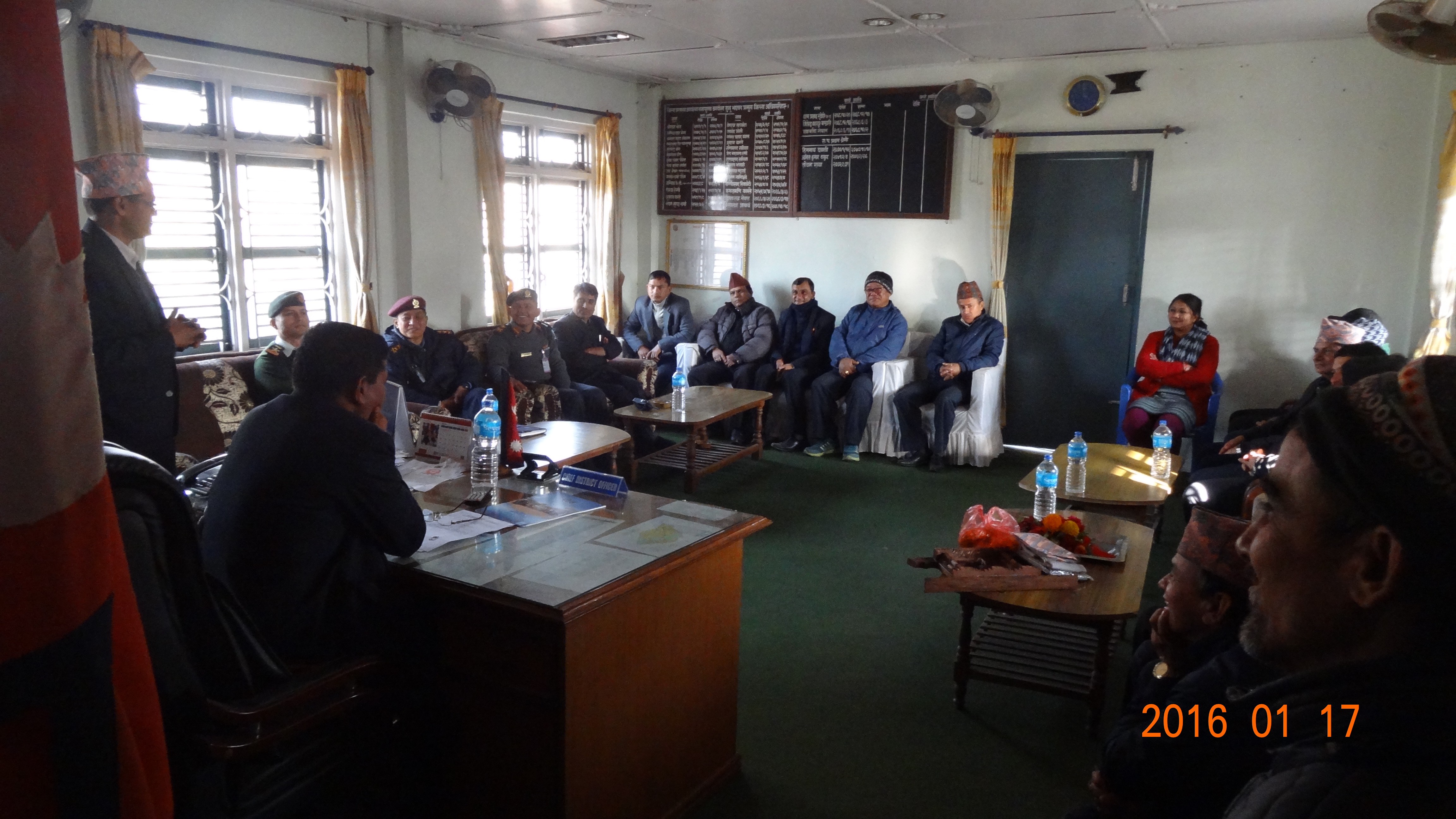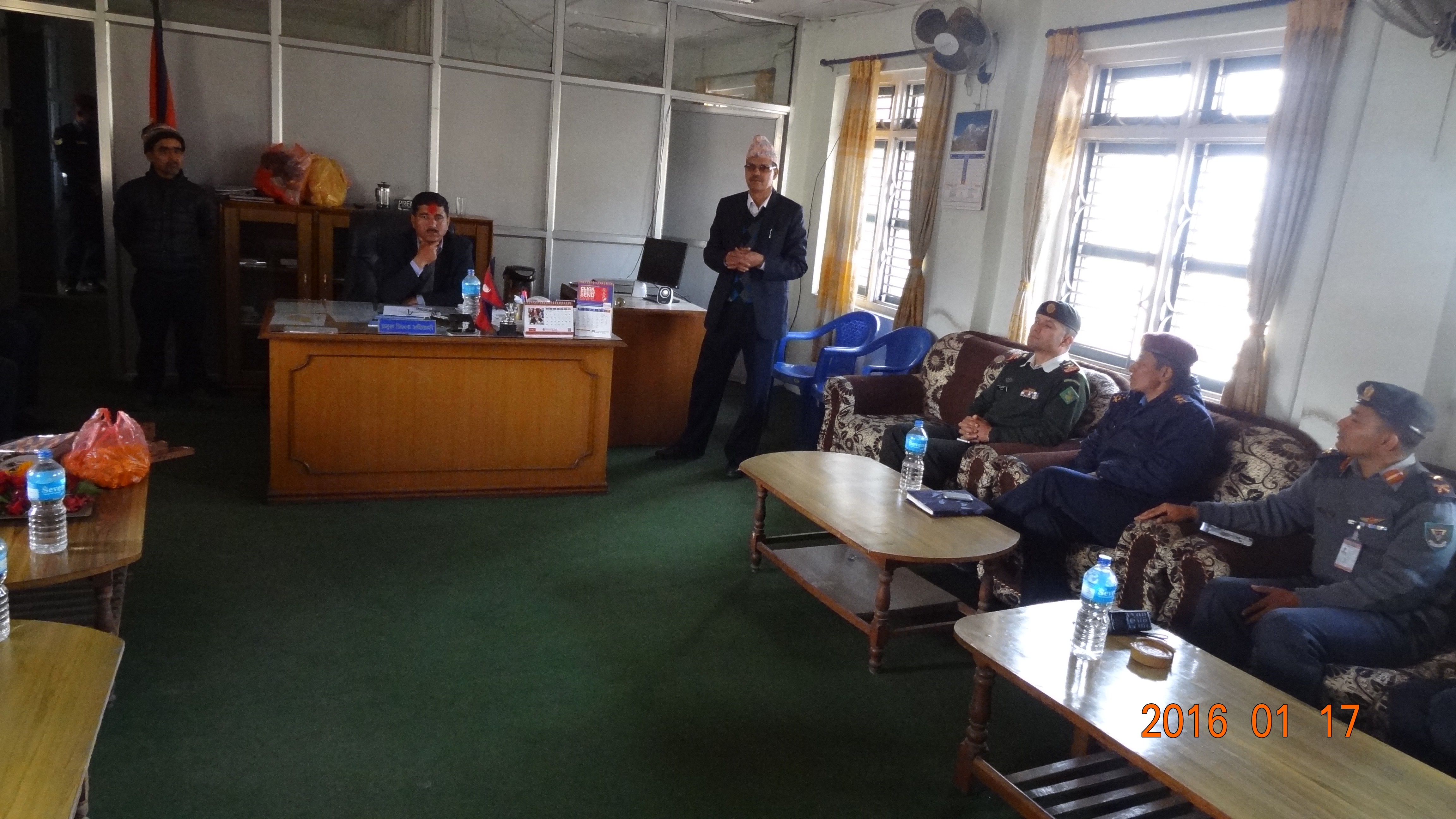 सशस्त्र प्रहरी उपरीक्षक श्री दिनेश कुमार महतलाई विधाइ गर्नु हुदै प्रमुख जिल्ला अधिकारी श्री रोशनी कुमारी श्रेष्ठ