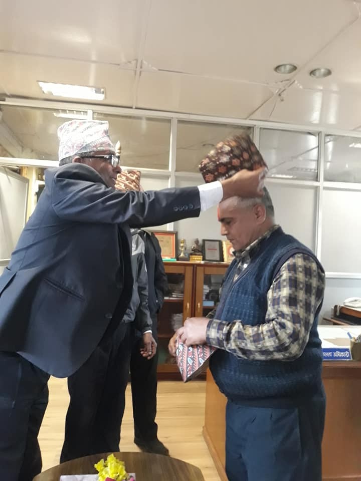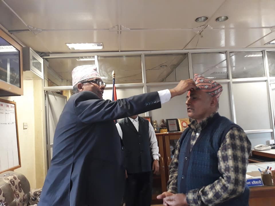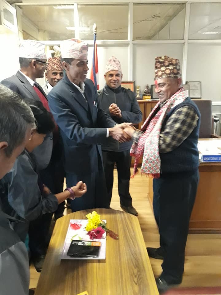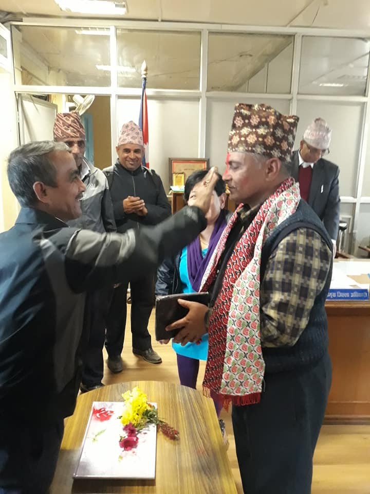 सहायक प्रमुख जिल्ला अधिकारी श्री माधव प्रसाद शर्माज्यू विदाइ गर्नु हुदै प्रमुख जिल्ला अधिकारी श्री खगेन्द्रप्रसाद रिजालज्यू