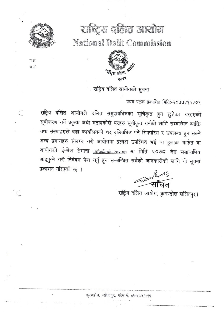राष्ट्रिय दलित आयोगको सूचना ।