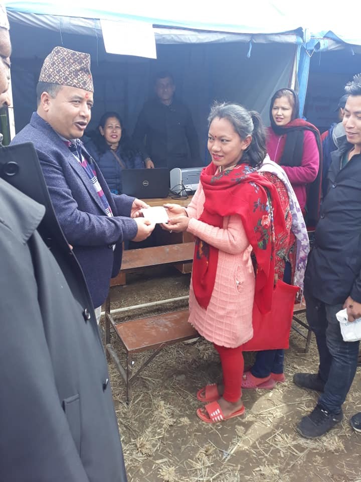 सशस्त्र प्रहरी उपरीक्षक श्री दिनेश कुमार महतलाई विधाइ गर्नु हुदै प्रमुख जिल्ला अधिकारी श्री रोशनी कुमारी श्रेष्ठ