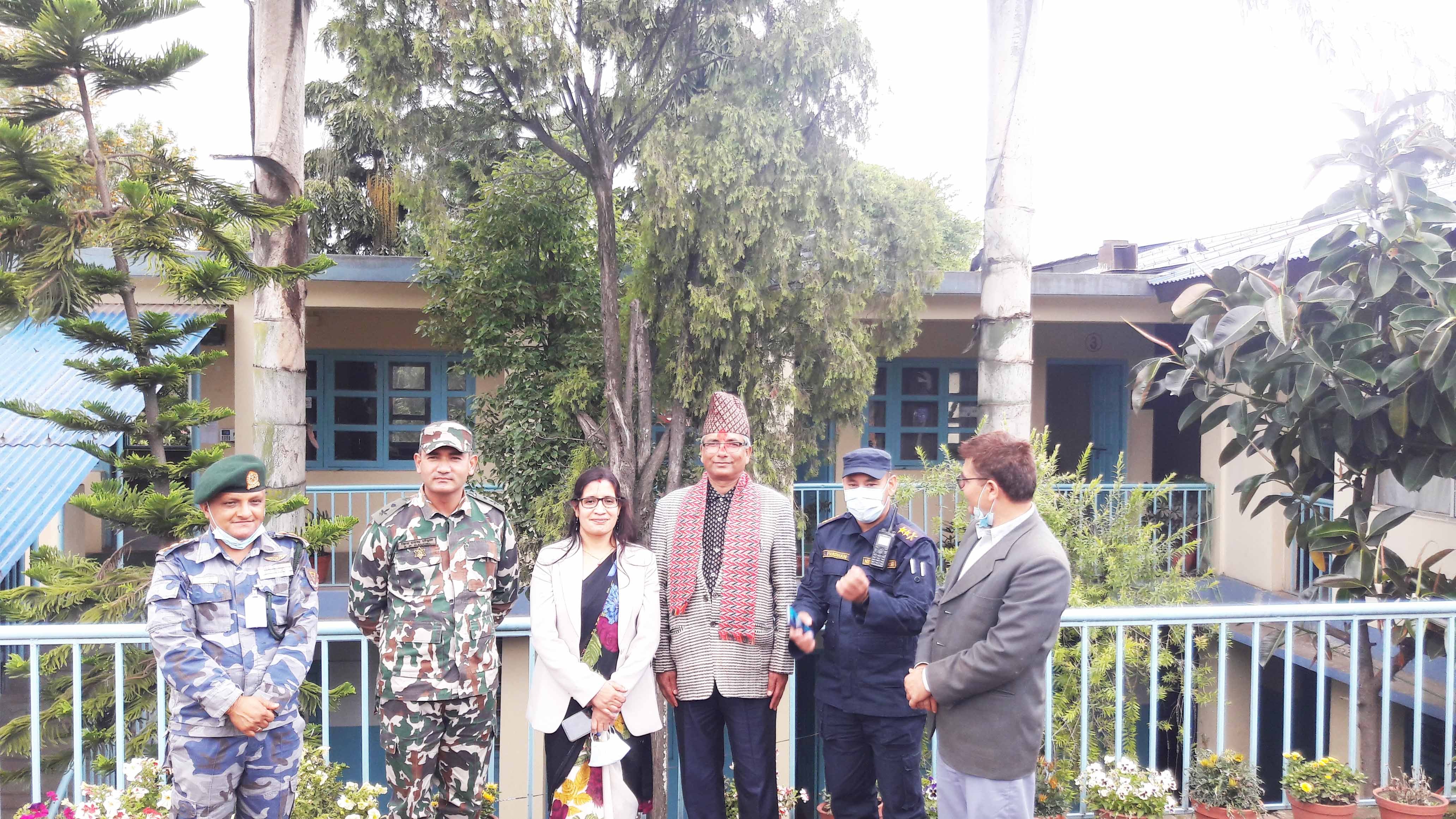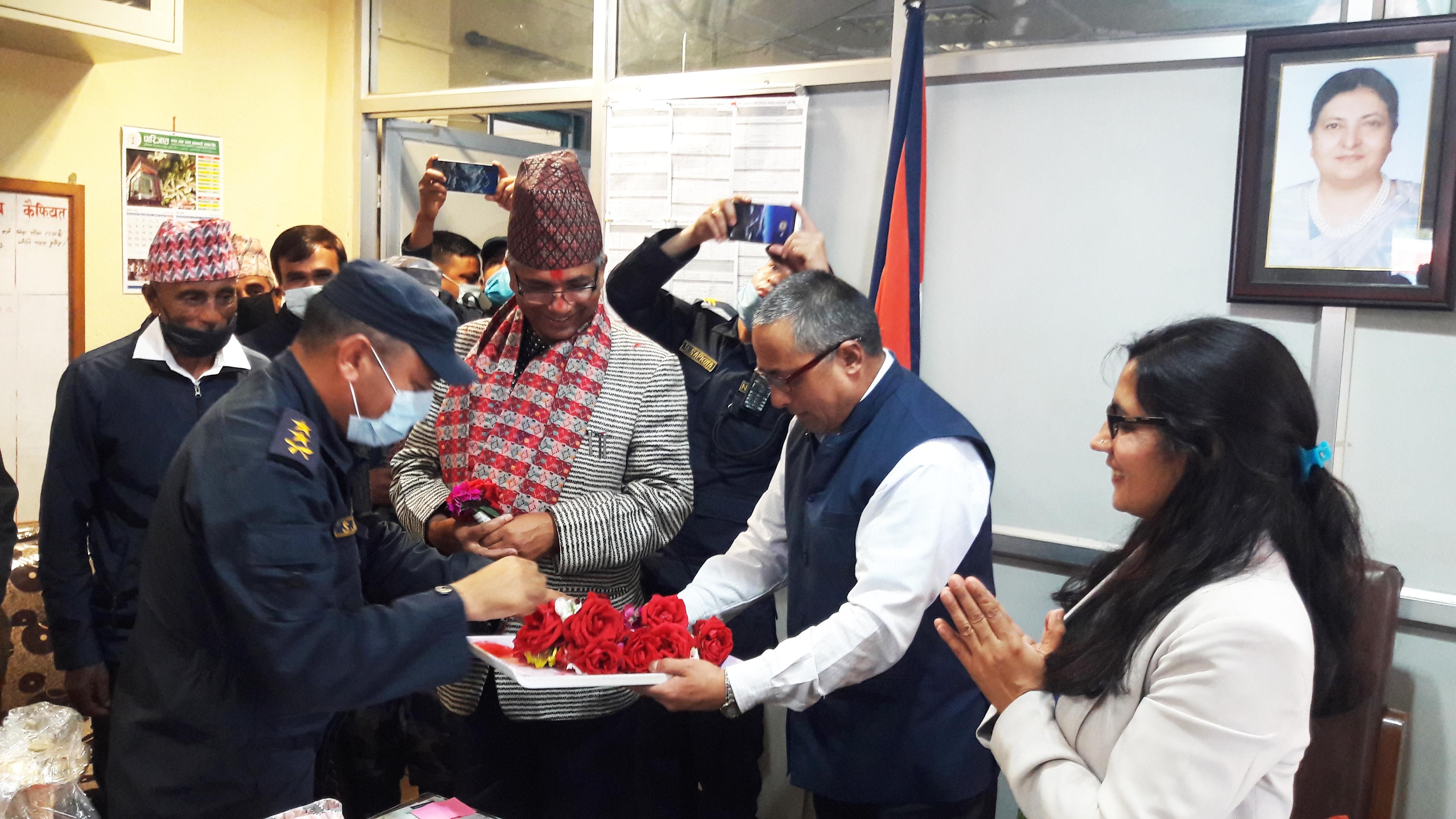 सशस्त्र प्रहरी उपरीक्षक श्री दिनेश कुमार महतलाई विधाइ गर्नु हुदै प्रमुख जिल्ला अधिकारी श्री रोशनी कुमारी श्रेष्ठ