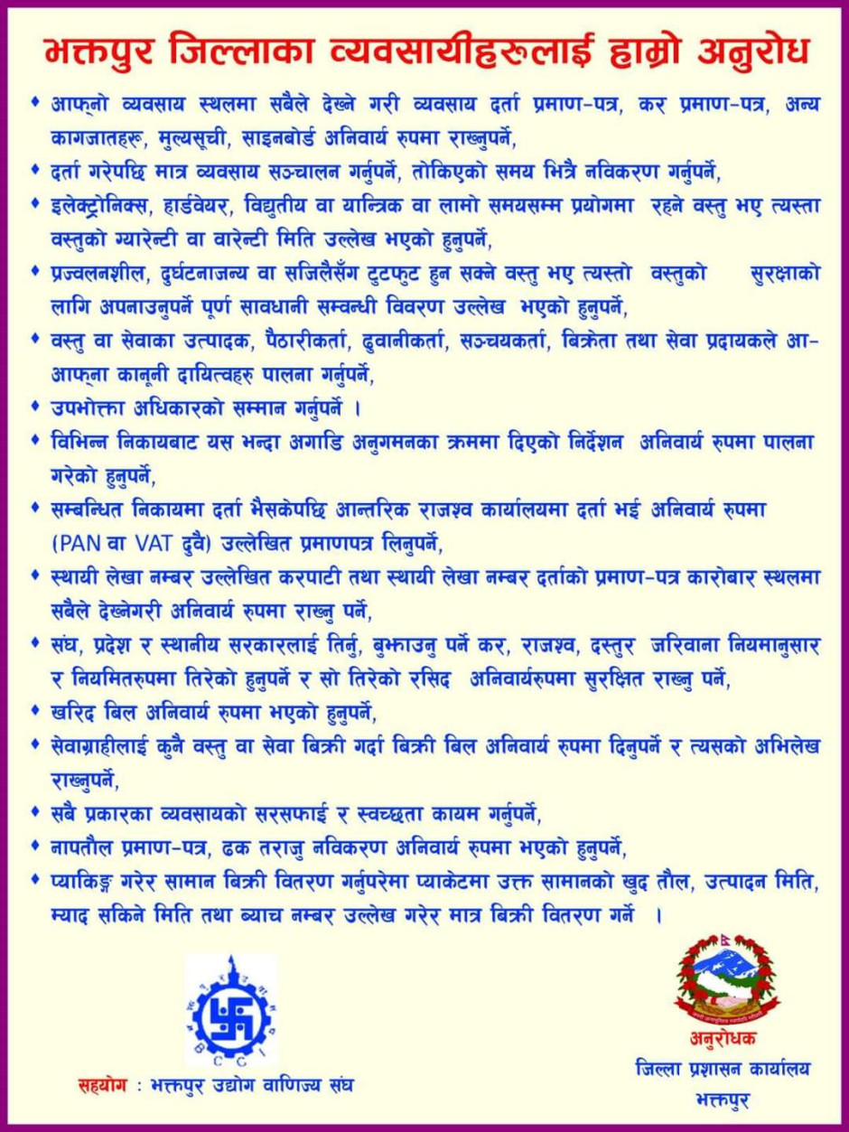 भक्तपुर जिल्लाका व्यवसायीहरुमा हाम्रो अनुरोध