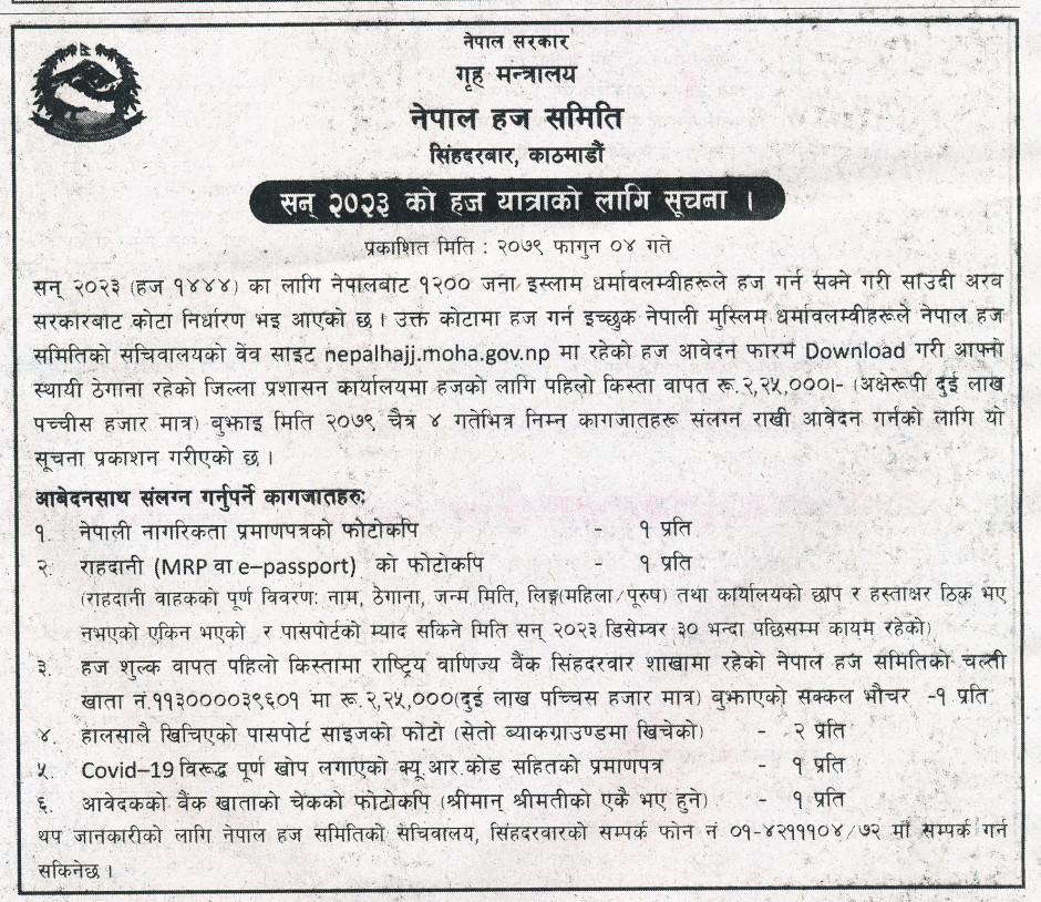 इजाजत प्राप्त हातहतियार बुझाउने सम्बन्धी अन्त्यन्त जरुरी सूचना