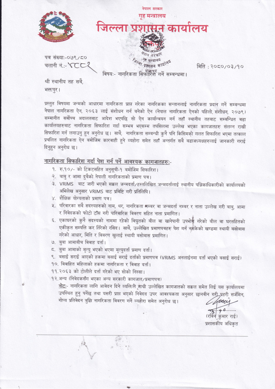 नागरिकता सिफारिश गर्ने सम्बन्धमा