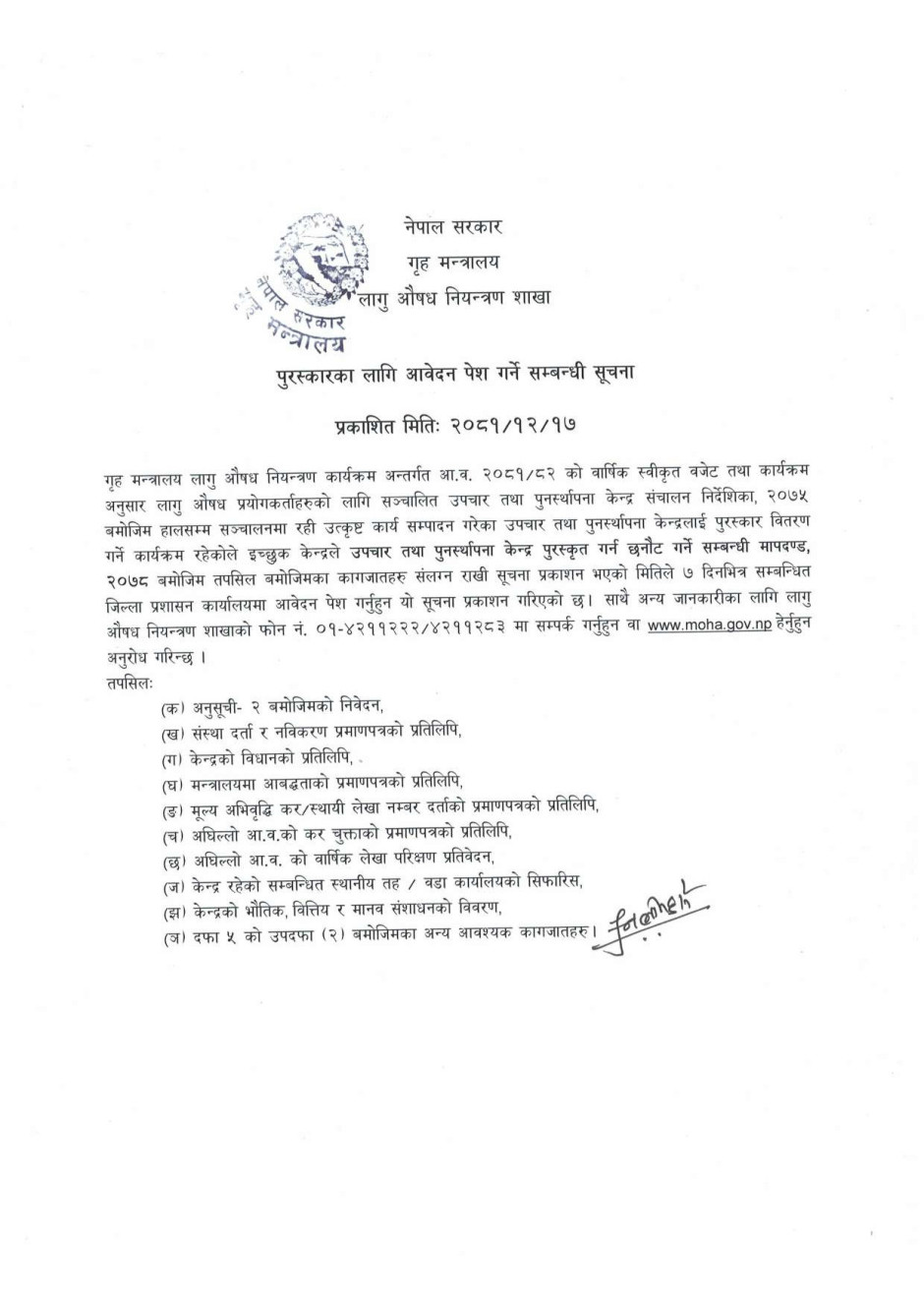 पुरस्कार तथा अनुदानका लागि आवेदन पेश गर्ने सम्बन्धी सूचना