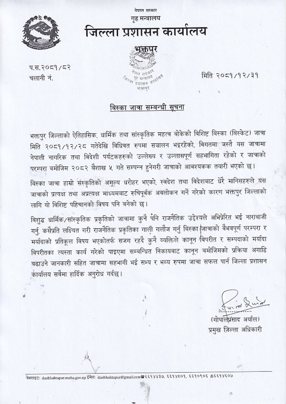 बिस्का जात्रा सम्बन्धी सूचना