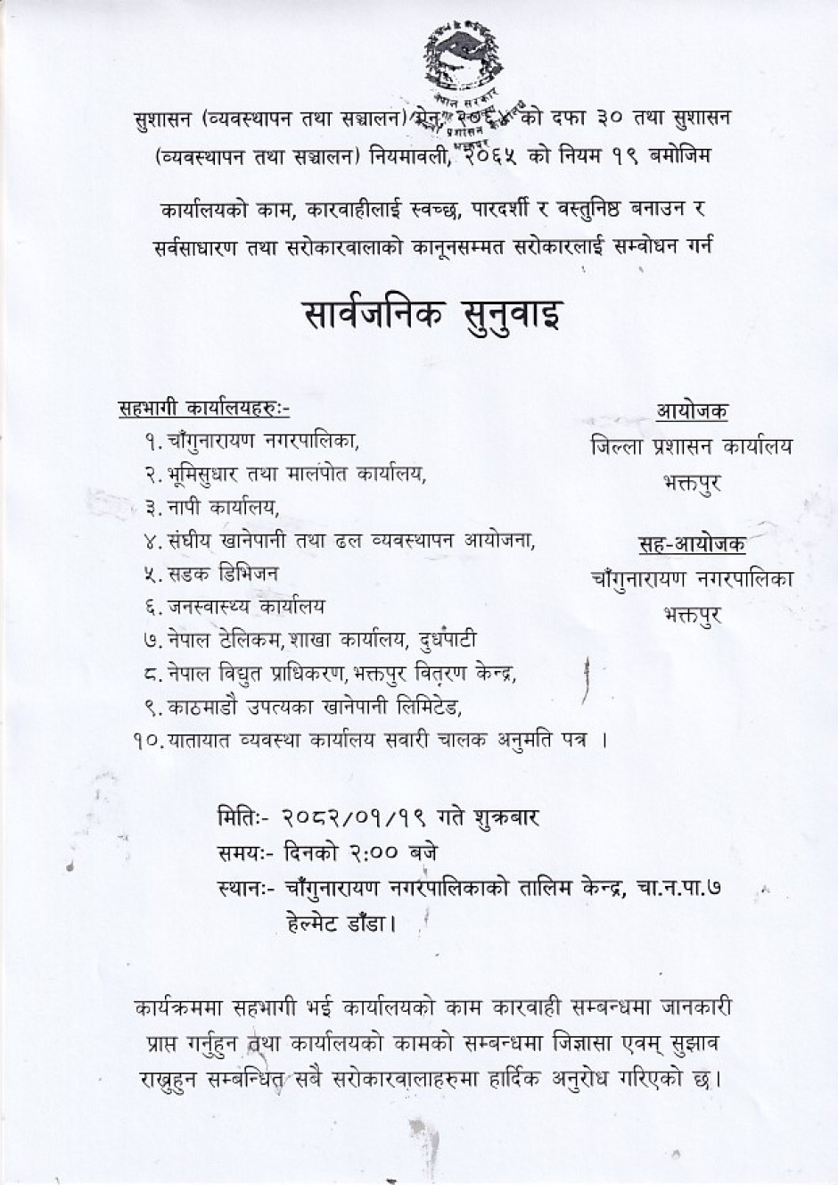 सार्वजनिक सुनुवाइ सम्बन्धी सूचना