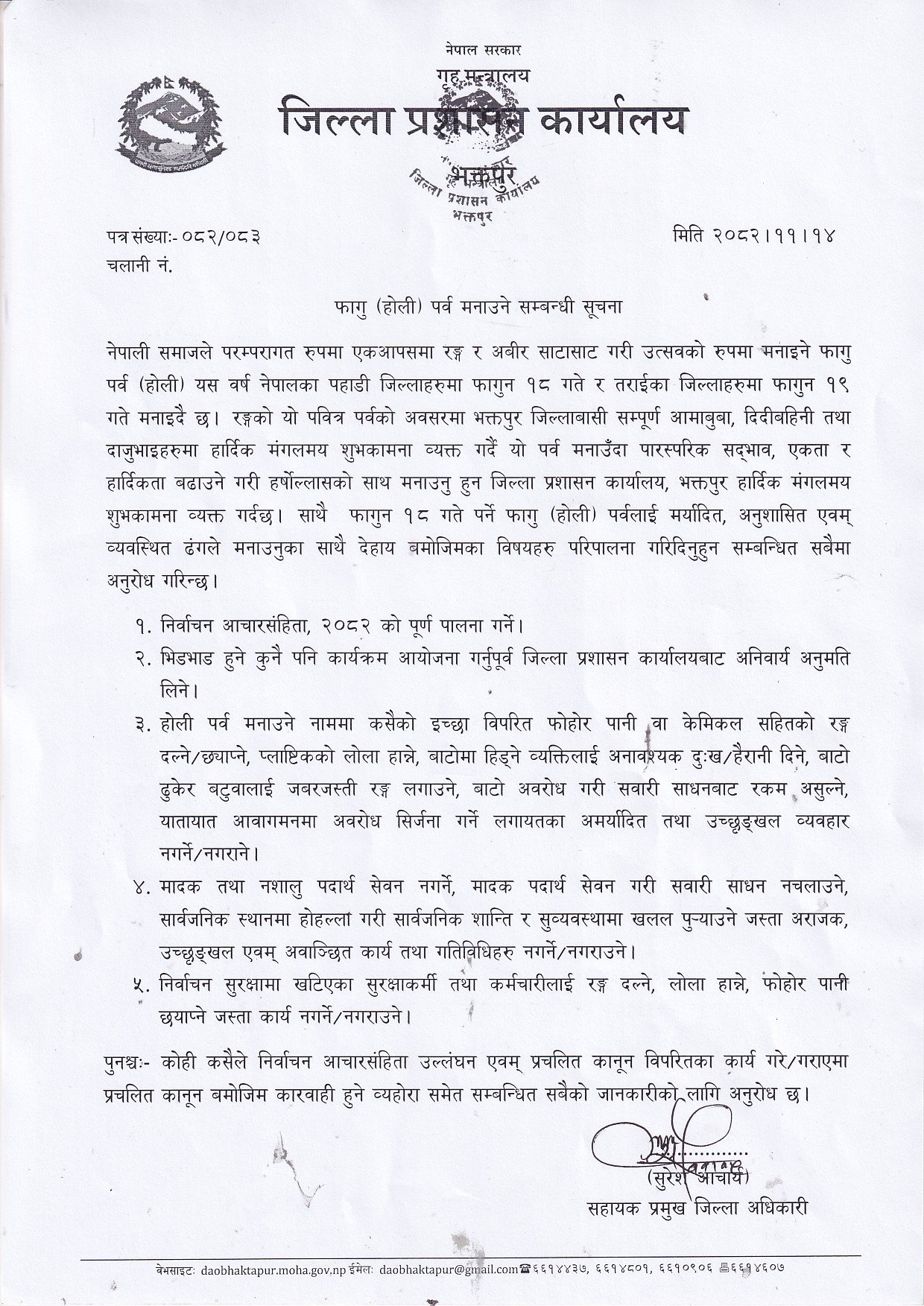 फागु (होली) पर्व मनाउने सम्बन्धी सूचना