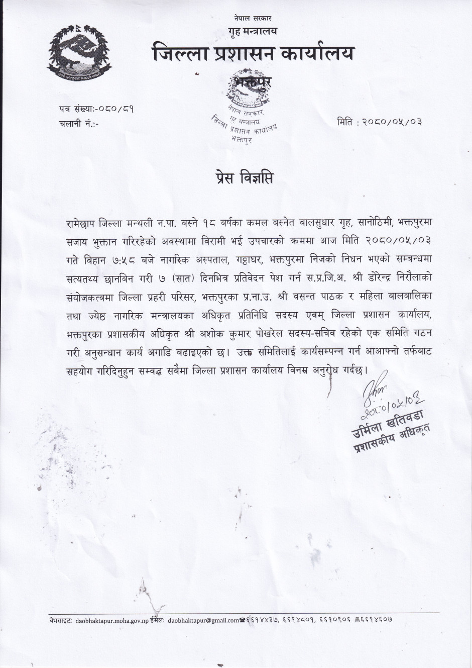 © सर्वाधिकार सुरक्षित जिल्ला प्रशासन कार्यालय, भक्तपुर