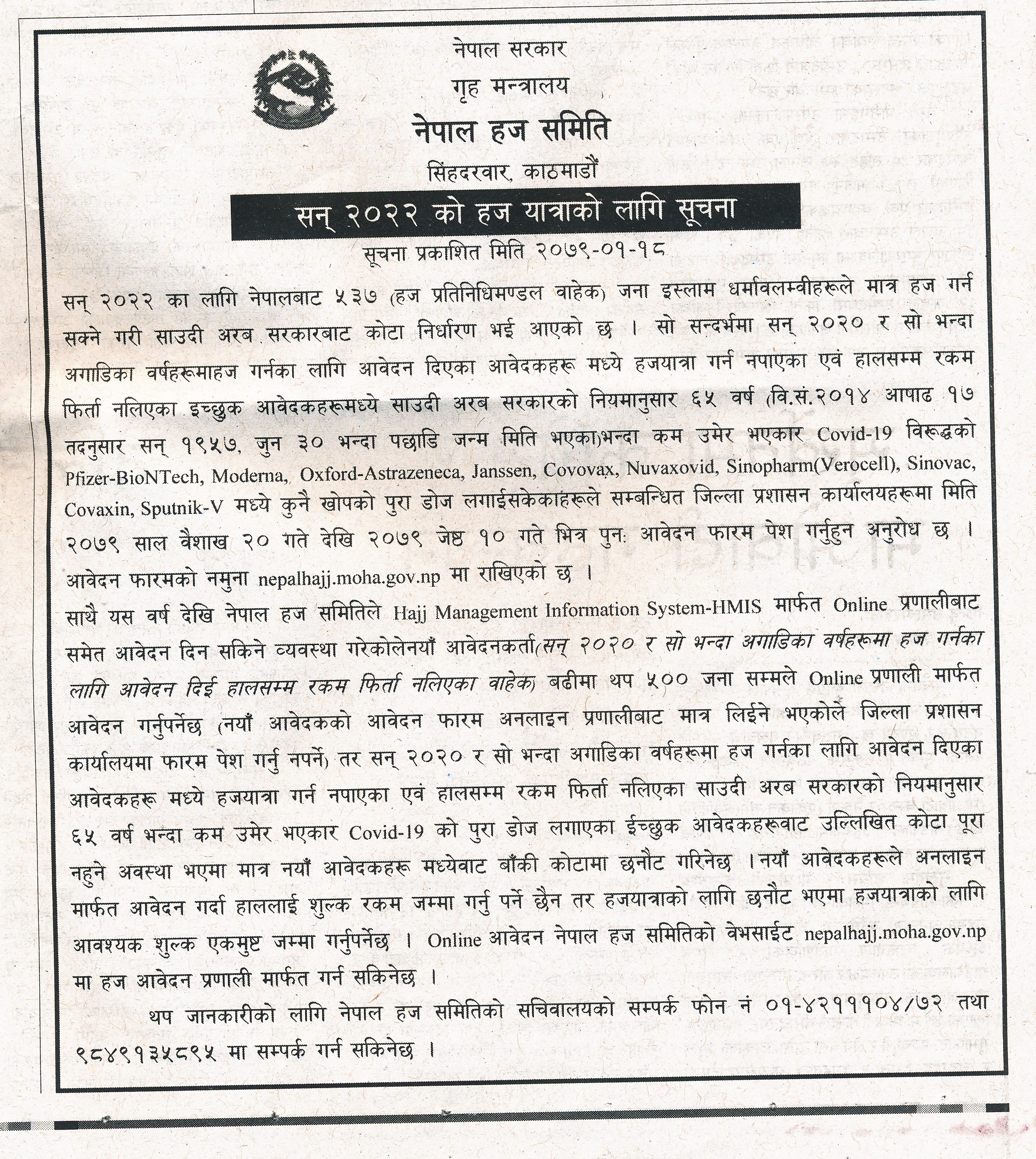 इजाजत प्राप्त हातहतियार बुझाउने सम्बन्धी अन्त्यन्त जरुरी सूचना
