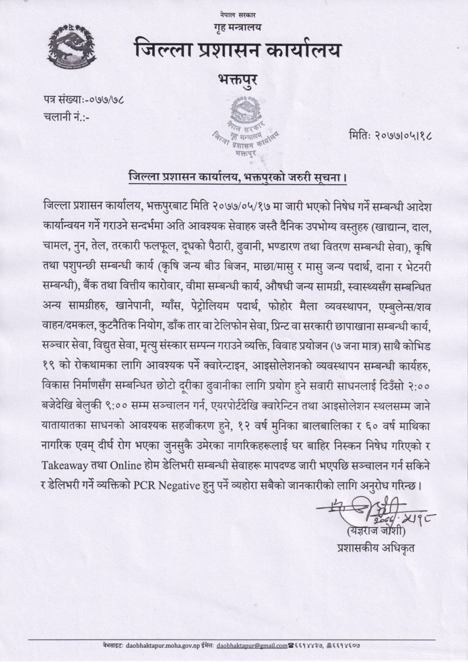 जिल्ला प्रशासन कार्यालय, भक्तपुरको जरुरी सूचना । २०७७।०५।१८